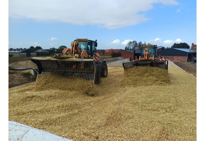 *MKS-Hakselen: Hierbij wordt de volledige kolf, inclusief schutblad en spil mee gehakseld. Zeker voor runderen is dit een betere voeding dan het gekende CCM (enkel graan). Hierdoor krijgt men vezelrijkere voeding met meer structuur, dat is wat runderen nodig hebben. Dit product kan gewoon worden ingekuild en als krachtvoer bijgevoerd worden.